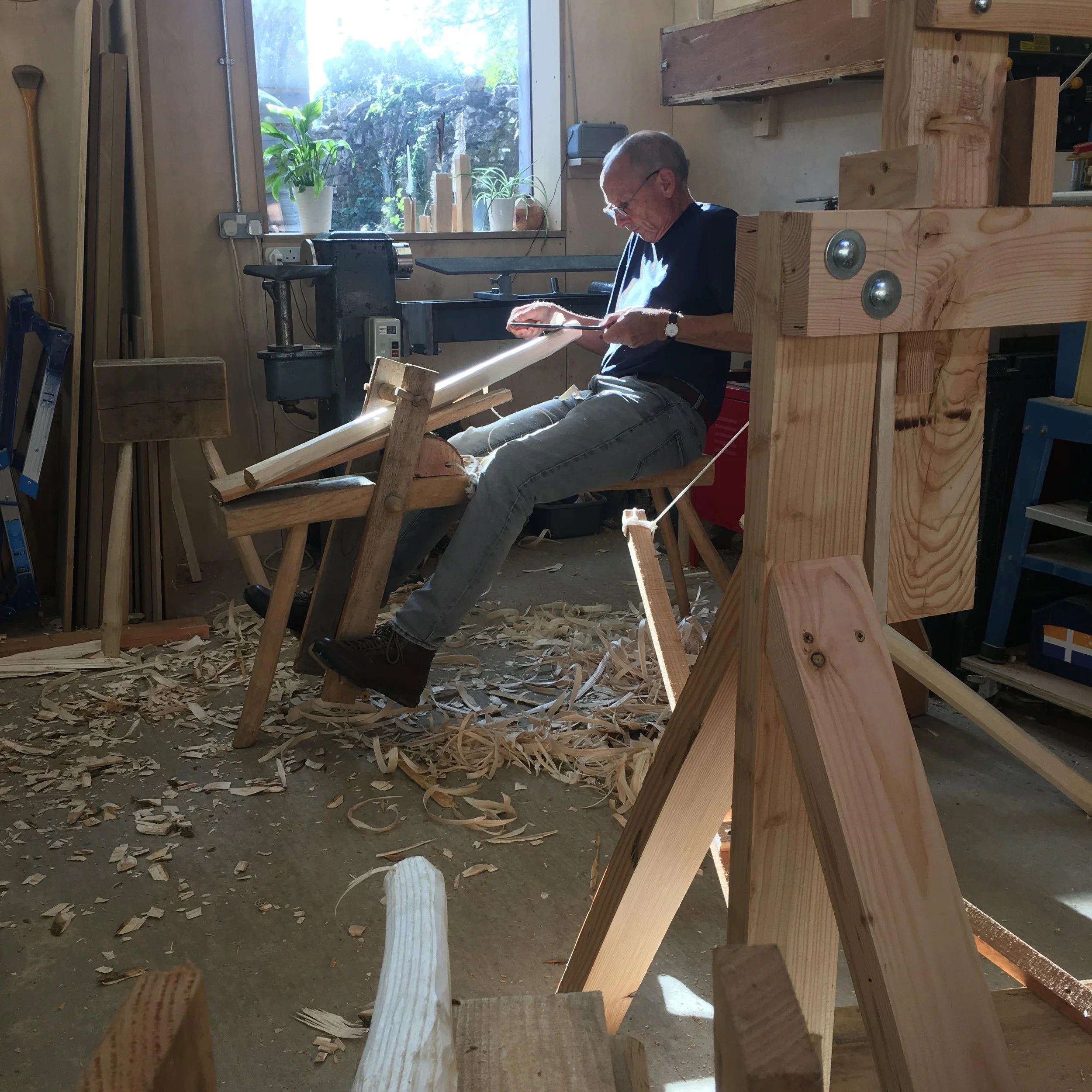 Once this is done, using traditional hand tools, the froe, axe, drawknife and spokeshave, on a shave horse, you will create the components needed.